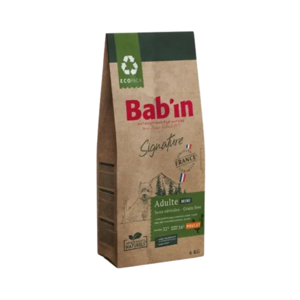 غذای خشک سگ بالغ بدون غلات mini adult برند Babin بابین طعم مرغ 6 کیلویی