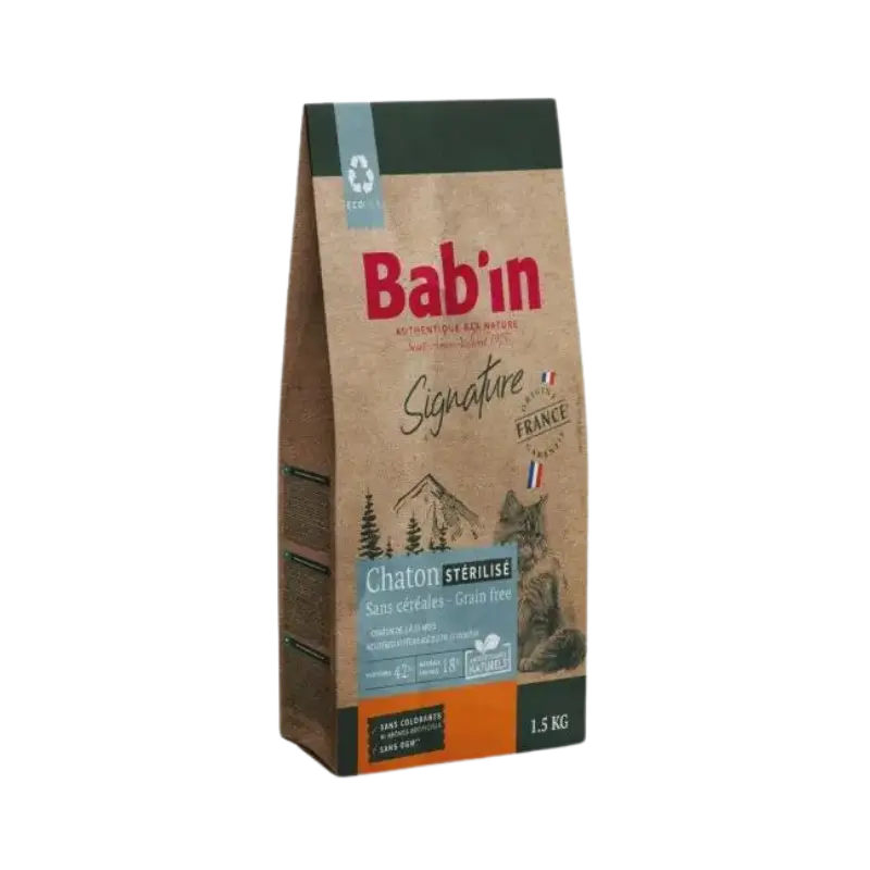 غذای خشک بدون غلات بچه گربه برند بابین فرانسه، بدون غلات یا گلوتن فرموله شده است تا نیازهای بچه گربه های حساس به غلات و گلوتن را برآورده کند.