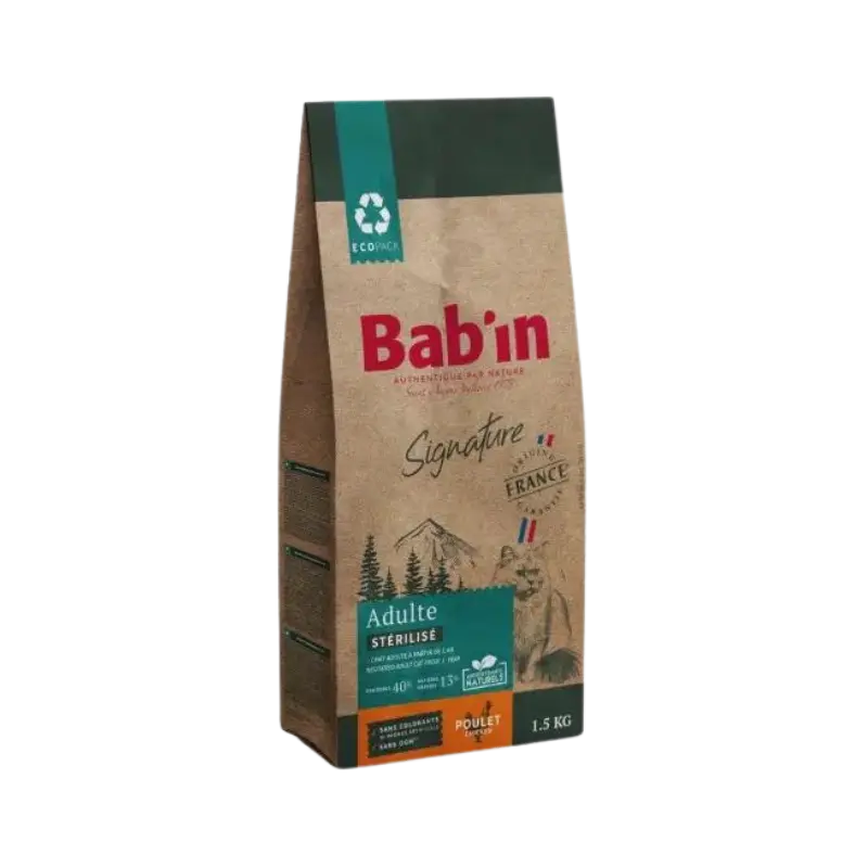 غذای خشک گربه بالغ عقیم شده poulet با طعم مرغ برند بابین، غنی از مرغ، یک غذای بسیار قابل هضم است