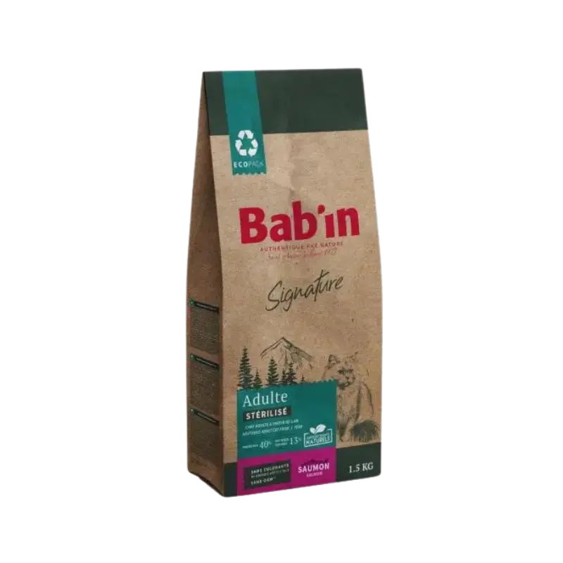 غذای خشک گربه بالغ عقیم شده salmon طعم ماهی برند Babin بابین 1.5 کیلویی
